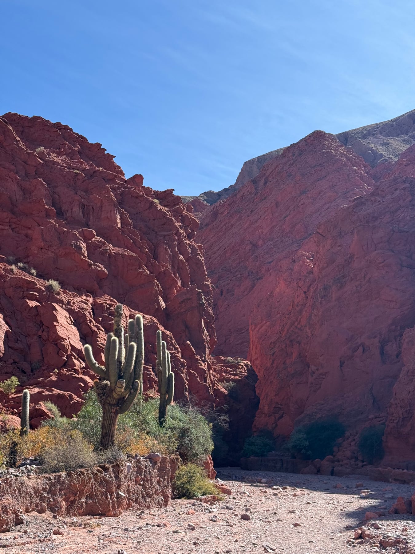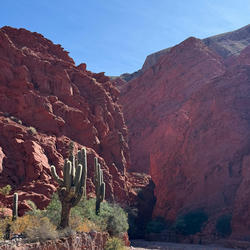 Las vistas fueron impresionantes. Es un lugar de piedras rojas y formaciones geológicas muy interesantes. Es seco, como el desierto, y hay cactus y condores. Me parece que la vida en Jujuy es dura, con mucha pobreza, pero la gente parecía contenta, si no exactamente feliz. Hay gente que vive bastante aislada en las montañas, con sus cabras y burros, a quienes nos encontramos en los senderos.