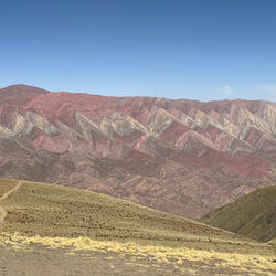Despues de Iruya, pasamos un dia en Purmamarca. Paramos en Hornocal para la vista de las serranias de 14 colores. Era hermosa, pero los vientos fueron muy fuertes, casi 100 km/h, y no pudimos disfrutarlo. Purmamarca es un pueblo lindo, si un poco turistico. Hay un mercado donde compramos algunas cosas de lana de llama. Compré una bufanda, muy útil en este invierno.