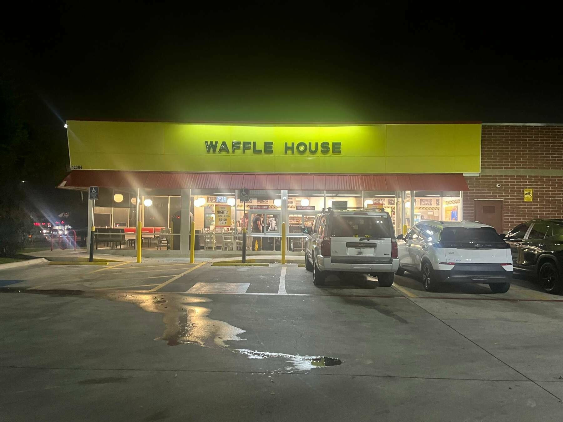 Finalmente, fuimos al Waffle House para cenar. Ahora mis amigos estan jugando un videojuego mientras escribo este.
